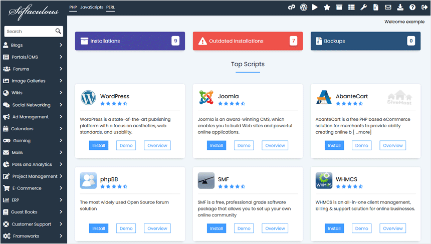 3. cPanel will open the Softaculous interface.