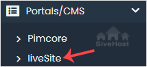 4. On the left side, locate the Portal/CMS category. Click on it and then on the liveSite link that appears.