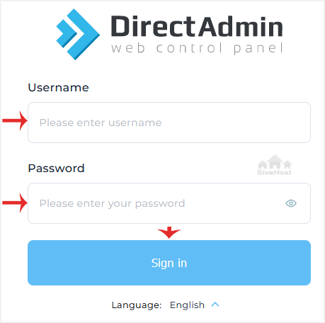 Enter your credentials and click on Login. If your login details are correct, you will have successfully logged into your DirectAdmin account.